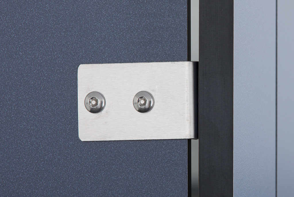 Pilasters are connected to the panels with U brackets, providing a structurally strong and tight connection. Hardware is constructed stainless steel stirrups type T and F.