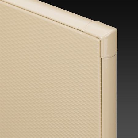 Anti-graffiti solution. Diamond texture steel surface with high gloss coating. Designed as an anti-graffiti solution, as any graffiti can easily be wiped off with cleaning solvents. The high gloss coat provides a gleaming appearance.